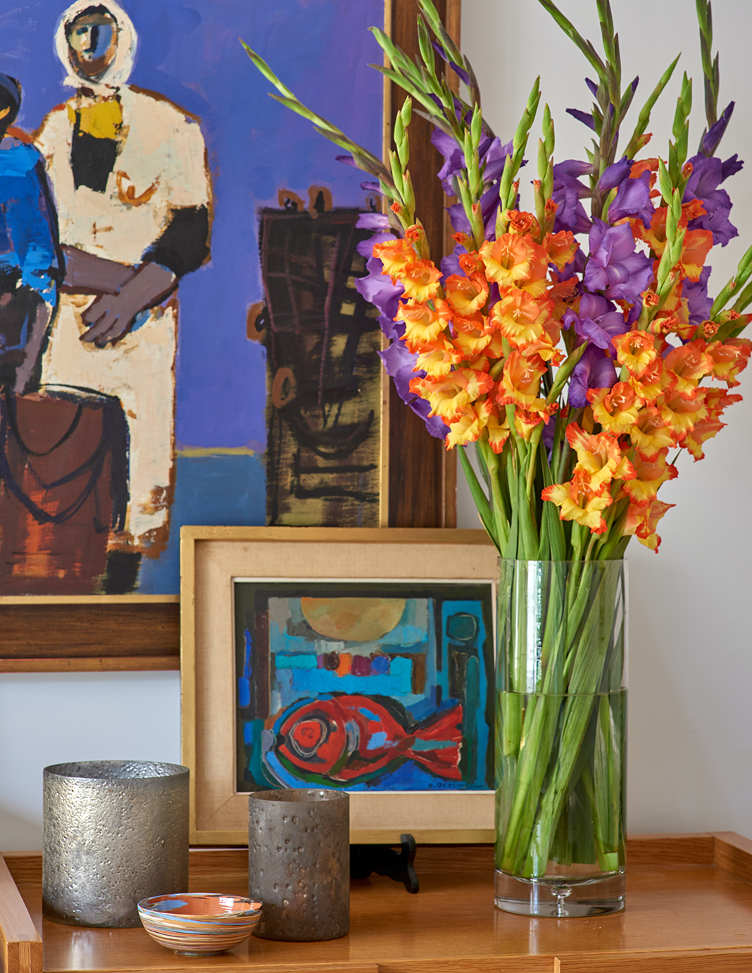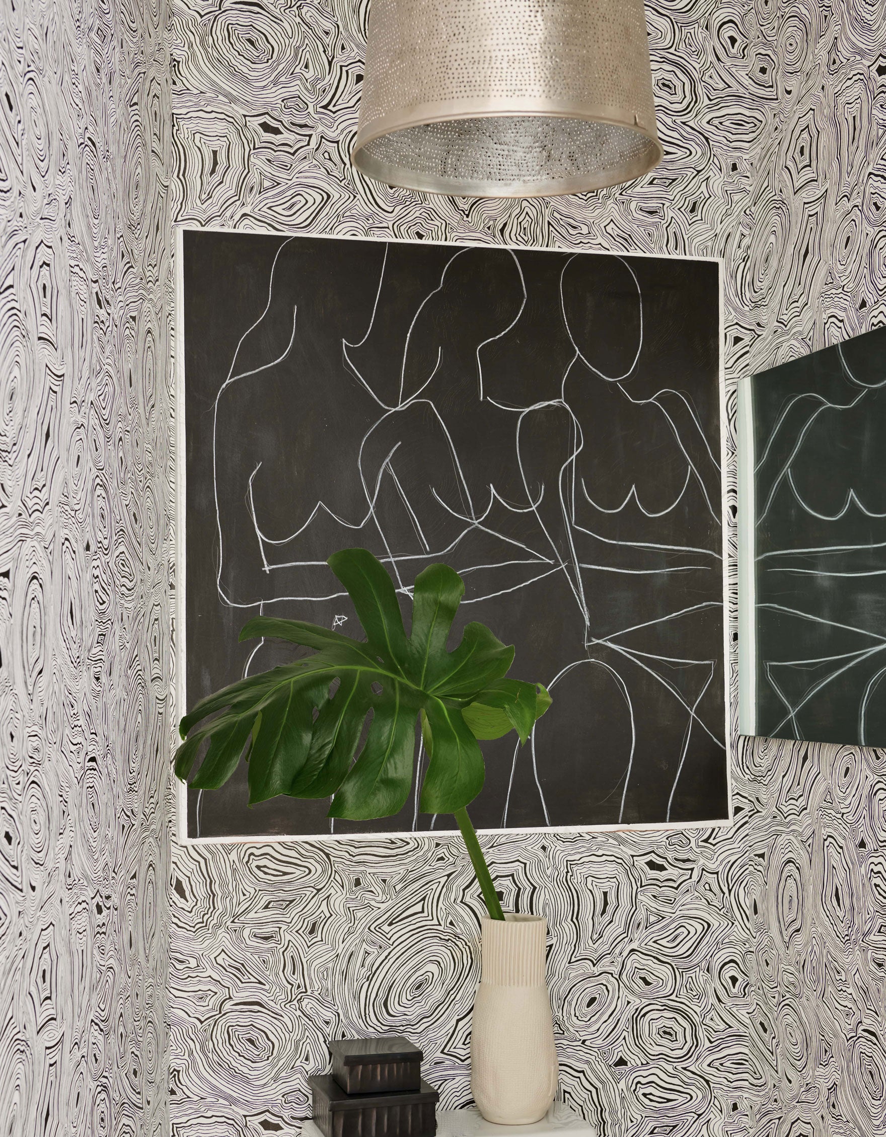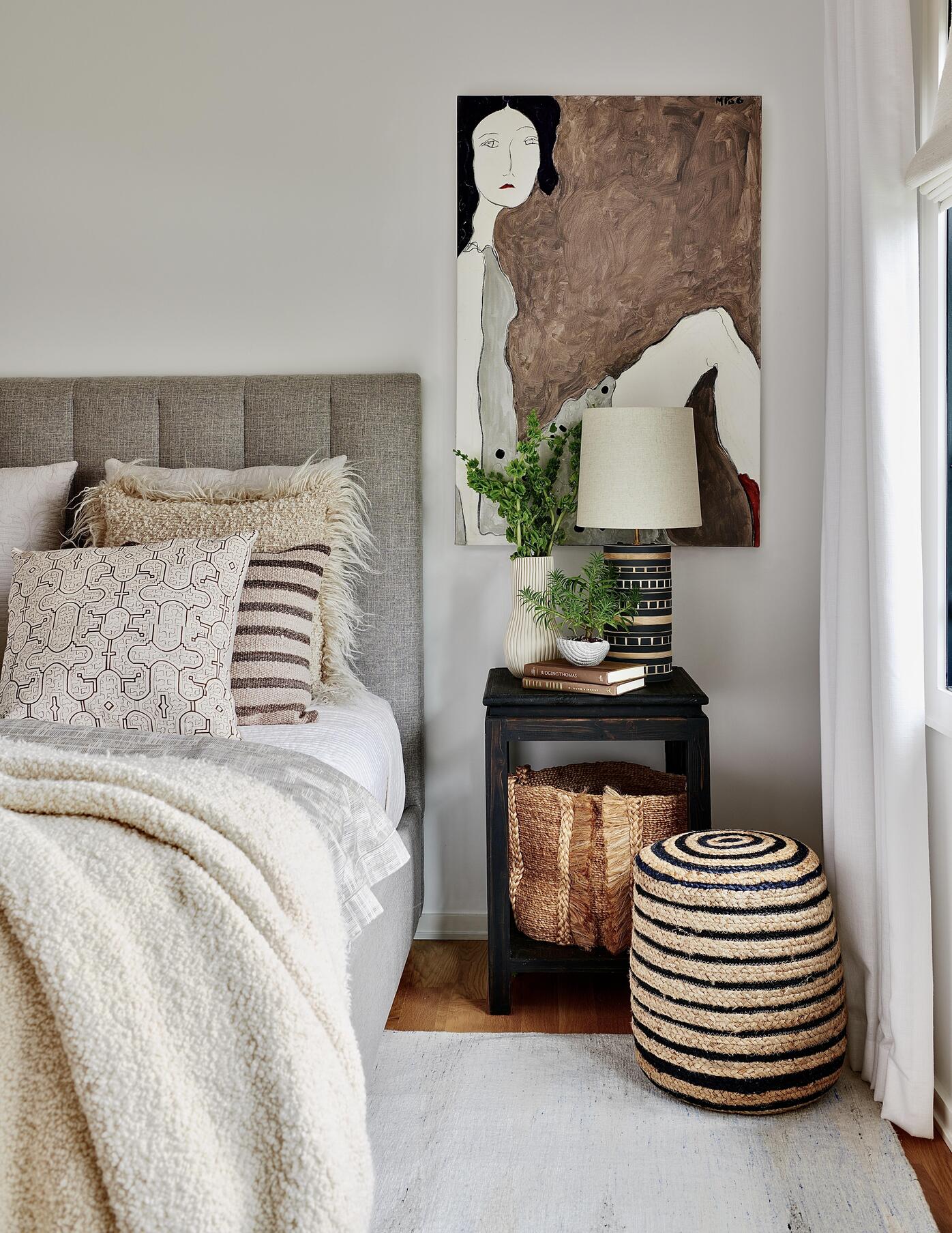Hand-woven poufs, crafted after Columbian hats, added an understated whimsy that made the living room complete. Round swivel chairs allowed enjoyment of the interior and exterior spaces. The eat-in kitchen featured iron-mesh chairs with leather cushions surrounding a glossy Saarinen table. The use of mixed materials created seating that was both functional and gorgeous. Our inspirational pendants were then added to the kitchen, giving warmth and a touch of the unexpected.