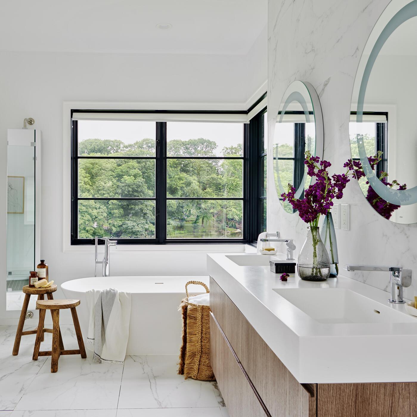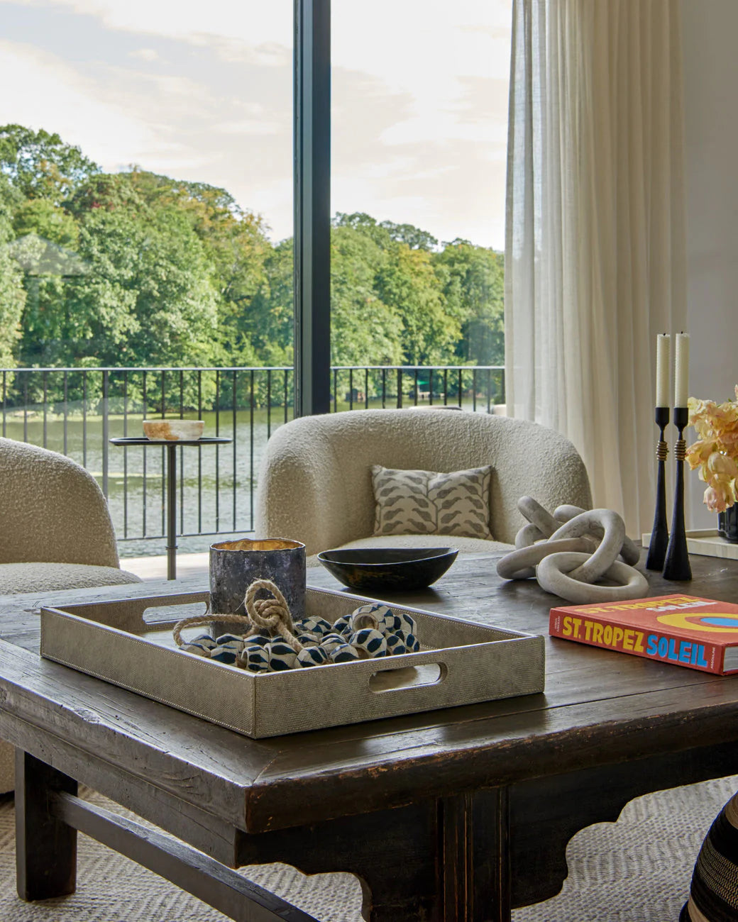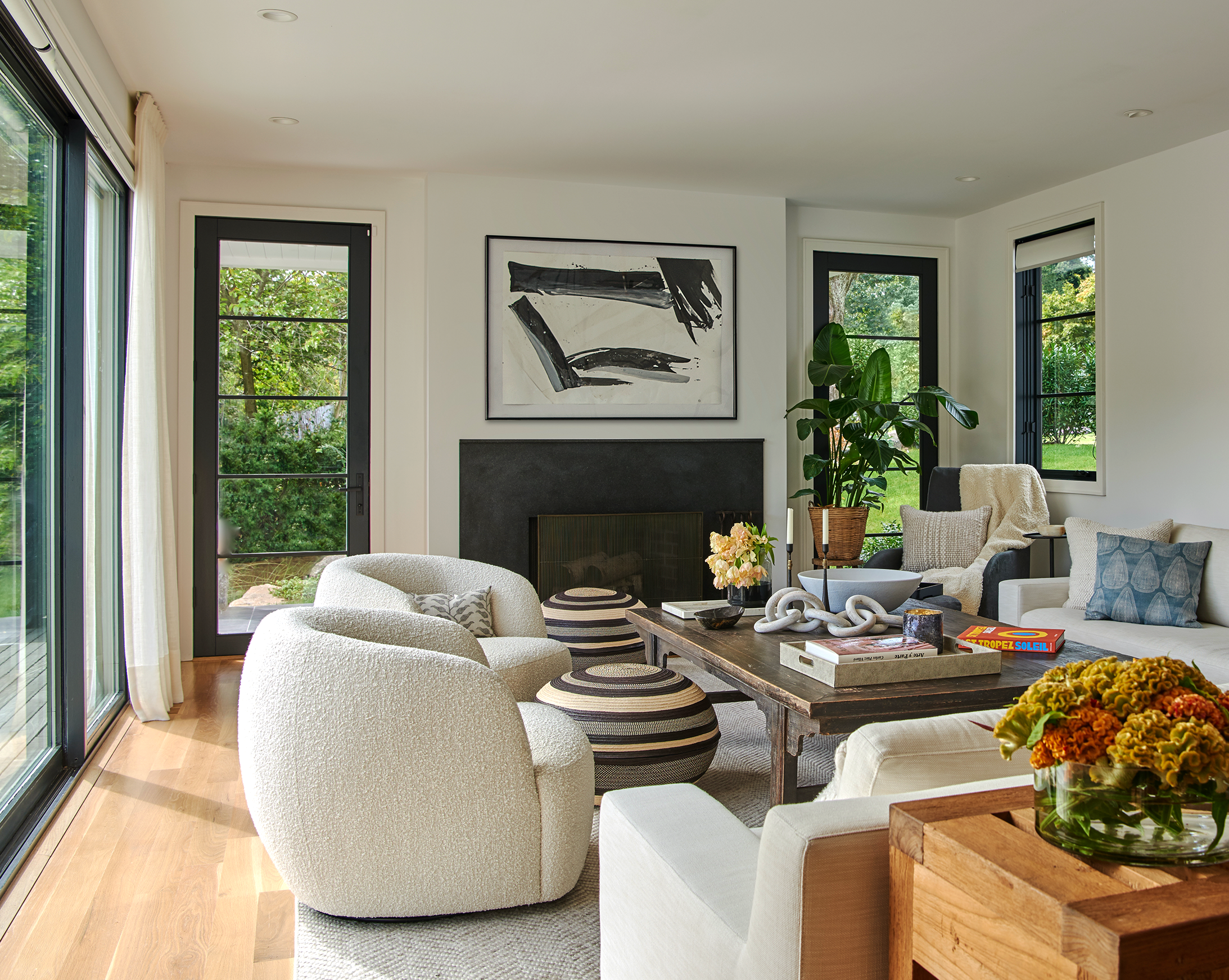 This home featured huge windows to showcase a gorgeous river vista. The owners wanted an interior design that would enhance the natural aesthetic while showcasing their art collection that reflected their modern, fun, and youthful point of view.